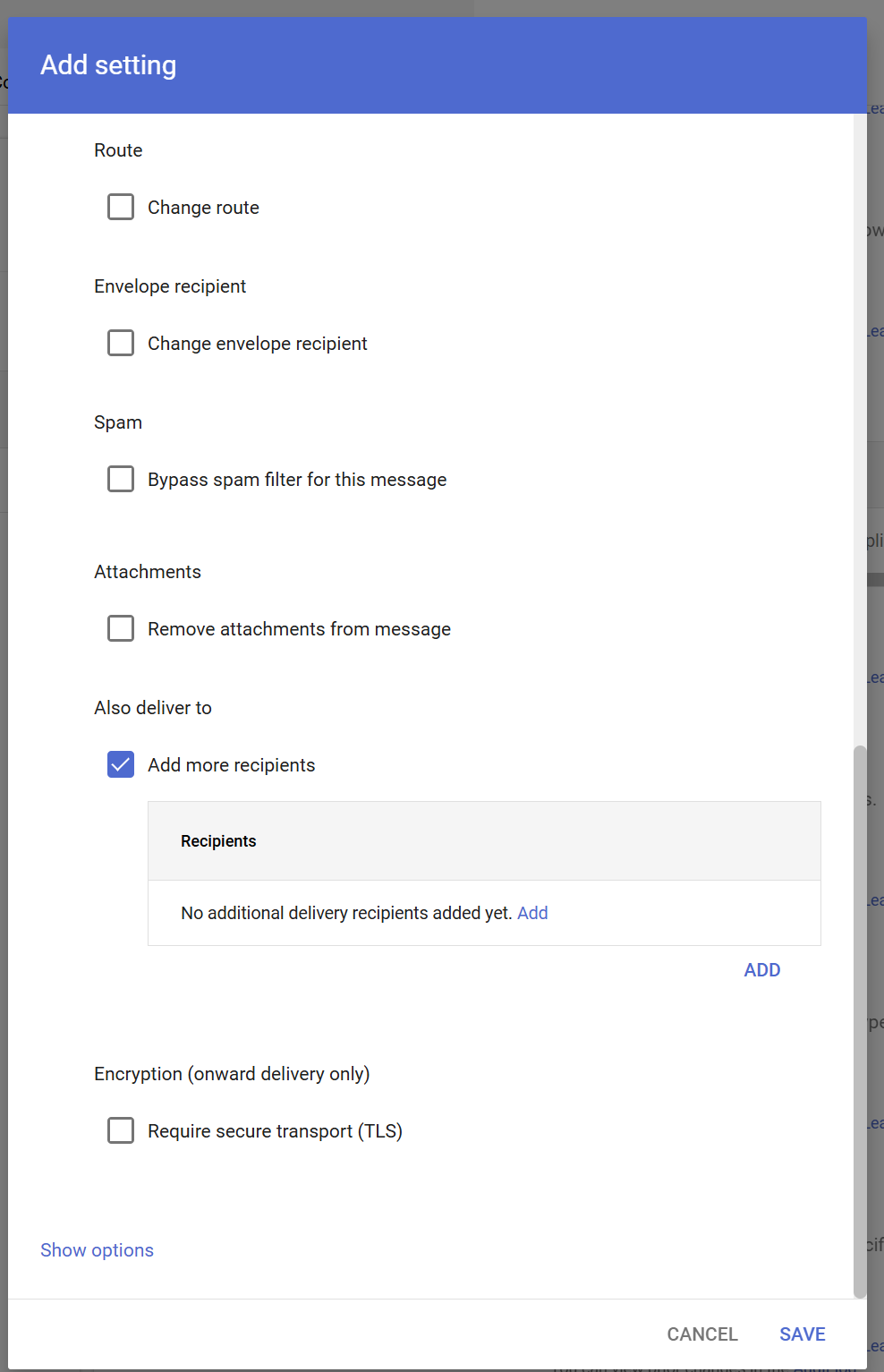 Once you have created the content match, you can scroll down and tell Gmail that you want to add another recipient. This is in effect providing a BCC recipient for the TeamScore service.