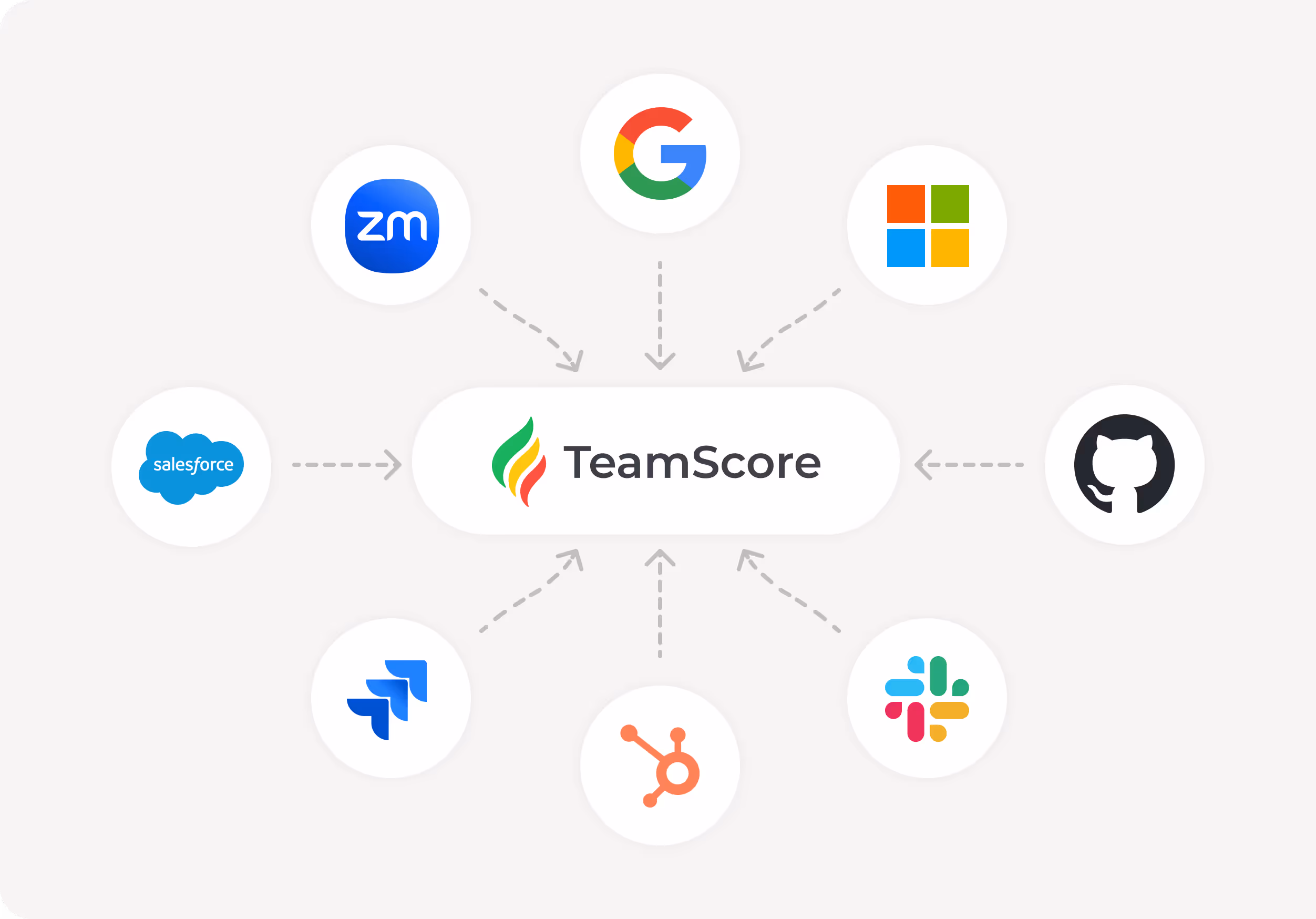 TeamScore connects to the cloud services you're already using to get almost real-time insights into the work that your team are doing - all without any software agents or spyware to install!