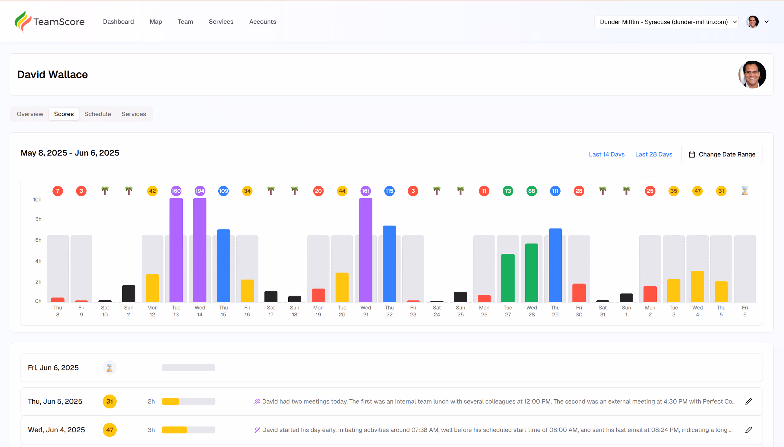 - TeamScore automatically organizes the activity signals it gets from cloud platforms.